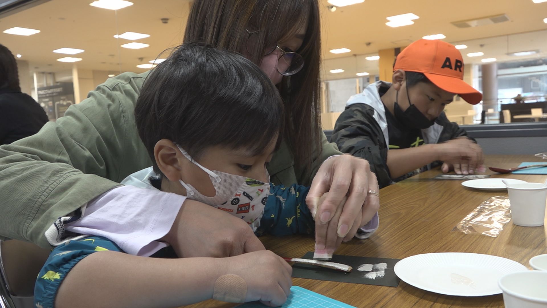 なかでは子どもたちがeスポーツに挑戦したほか、漆塗りのスプーンに好きな模様をつける絵付け体験などを楽しんでいました。
