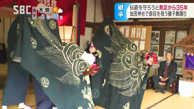 地域の伝統を守ろうと発足した長野市の「加茂(かも)神社神楽ばやし保存会」が35周年を迎え、お祝いの獅子舞が披露されました。長野市の加茂神社で披露された勇壮な獅子舞。お囃子に合わせて、女性が操る獅子を中…