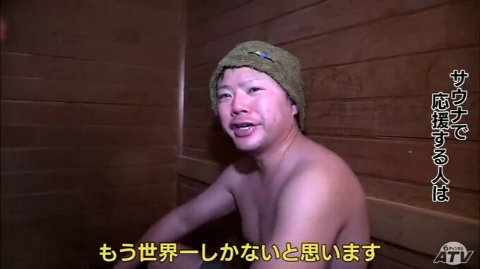 身体を真っ赤にして激戦を見届けたサウナ場では。