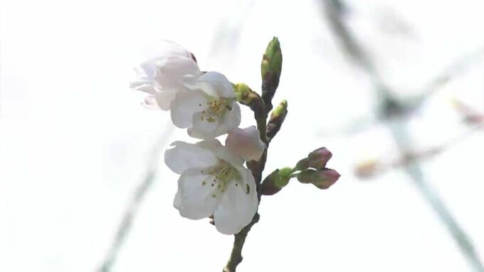 サクラ開花の基準となる岡山後楽園の標本木に5輪から6輪以上の花がみられました。午後には、気象台が確認に訪れるとのことで、きょう(22日)にも開花発表が出されそうです。7輪ほどのサクラの花が見られました。…