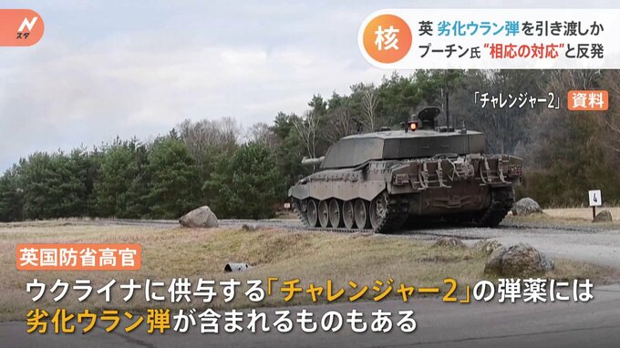 イギリスは、ウクライナに引き渡す戦車の弾薬に放射線毒性などを含む劣化ウラン弾が含まれると明らかにしました。ロシアのプーチン大統領は「核成分を含む武器」だとして、引き渡しが実現した場合、相応の対応をと…
