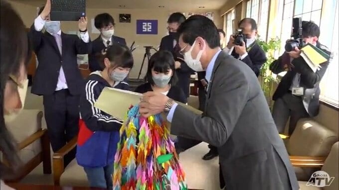 2月6日に発生し死者が5万人以上にのぼるトルコ・シリア大地震の被災者支援に役立ててくださいと、黒石市の小学生が22日、自分たちで集めた救援金と千羽鶴を黒石市へ贈りました。※児童たち「私たちの思いをトルコ…