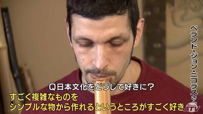 ※べランド・ジョン・ニコラスさん「初めて出会ったのは折り紙。鶴とか作ったりしていたけど、すごく複雑なものをシンプルな物から作れるというところがすごく好き。尺八は、5つの穴しかない。なのにいろいろな音が出るのがいい。音色とか音量とかを変えることによっていろいろなことを表現できる」