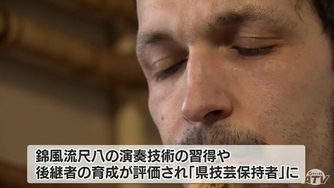 錦風流尺八の演奏技術を習得していることや後継者の育成にも務めていることなどから「青森県技芸保持者」として認定が決まりました。10人目の認定ですが外国人としては初めてです。