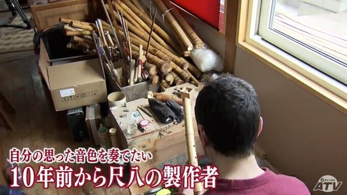 ニコラスさんは、師匠の山田さんから2年間指導を受け、10曲ある根笹派大音笹流錦風流尺八の伝承曲「津軽十調子(つがるじっちょうし)」をすべて習得しました。次第に、自分が思ったような音色を奏でたいという思いが強くなり、10年前からは製作者としても活動しています。1つ完成させるのには、約半年かかります。