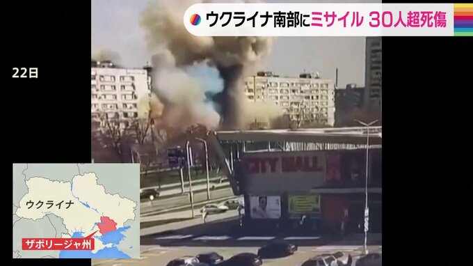 ウクライナ南部ザポリージャで集合住宅がミサイル攻撃を受け、1人が死亡、30人あまりがけがをしました。ゼレンスキー大統領は、ロシアによる住宅地を狙った残虐な攻撃だと非難しています。ウクライナメディアによ…