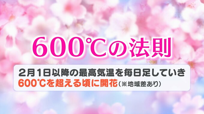 2月1日以降の最高気温を毎日足していき、600℃を超える頃に開花するというものです。