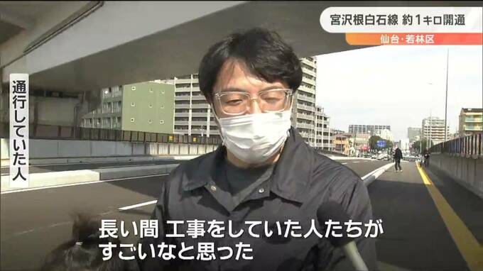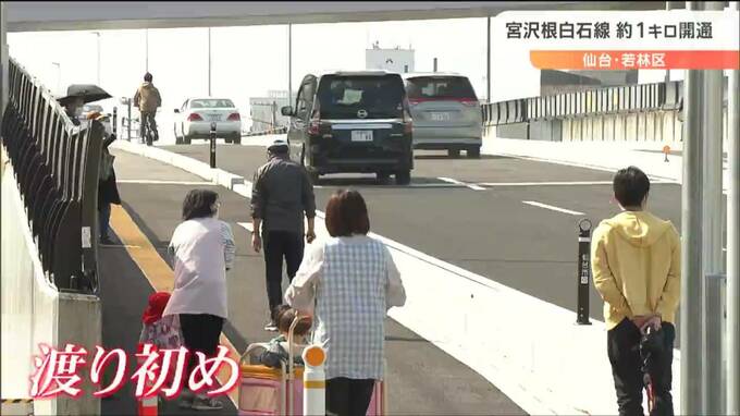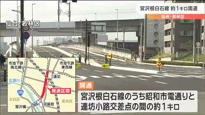 仙台市の都市計画道路、宮沢根白石線のうち、若林区のおよそ1キロの区間が23日午前、開通しました。