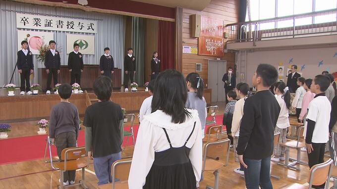 今年の卒業生は6人。6年間で大きく成長した児童ひとりひとりに卒業証書が手渡されました。