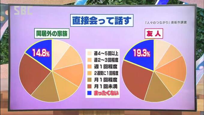 同居していない家族と直接会って話すことが「まったくない」人が14.8%、電話も「まったくない」人が16.9%、友人についても直接会って話すことがない人が19.3%に上りました。