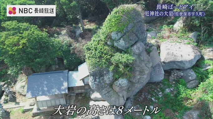 長崎県内各地をドローンの映像で紹介している、ふるさと再発見『長崎ばーどアイ』です。今週は高さ8メートル、パワースポットとして注目されている佐世保市 宇久島 厄神社の大岩です。宇久島のパワースポット厄神…