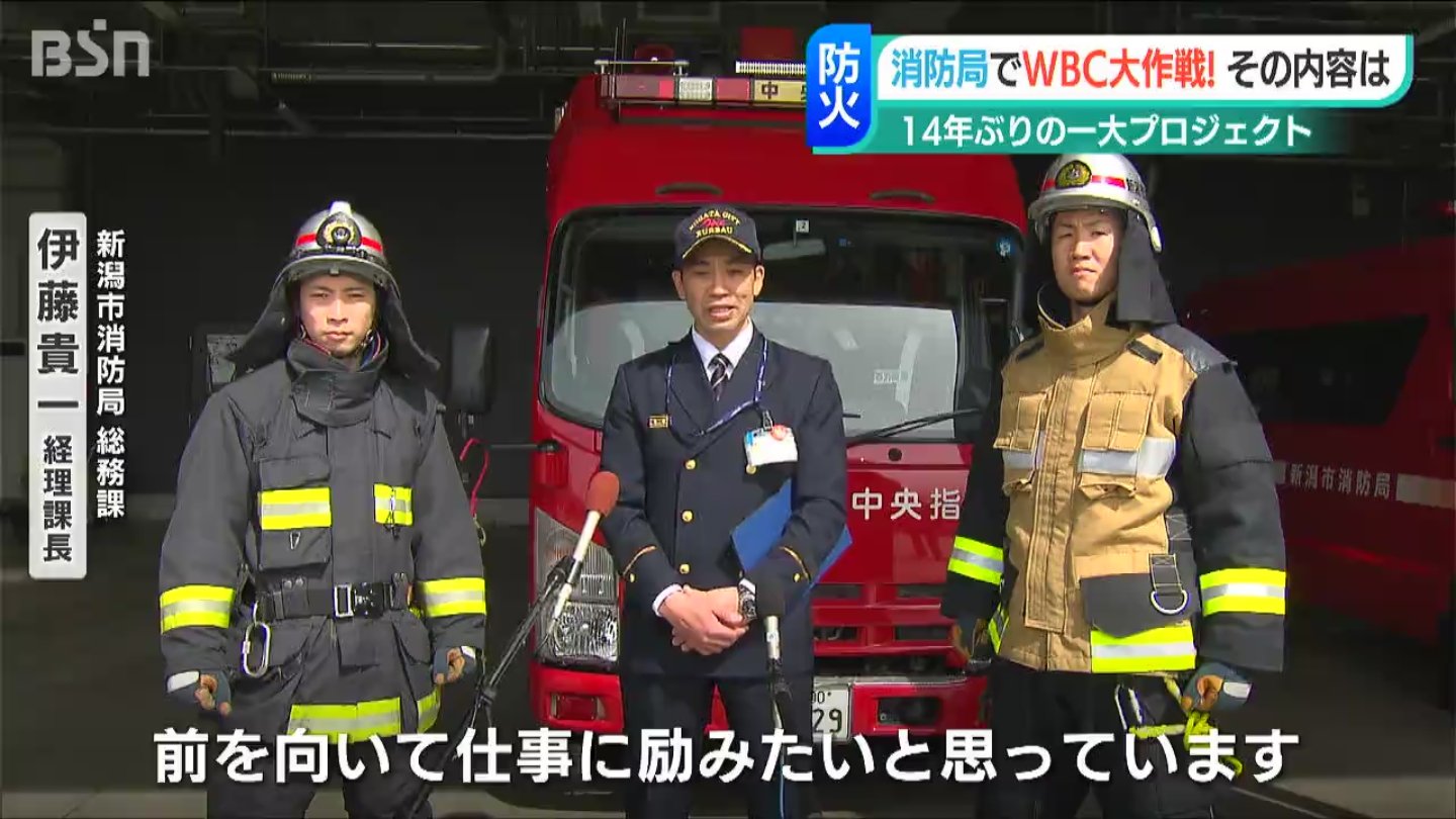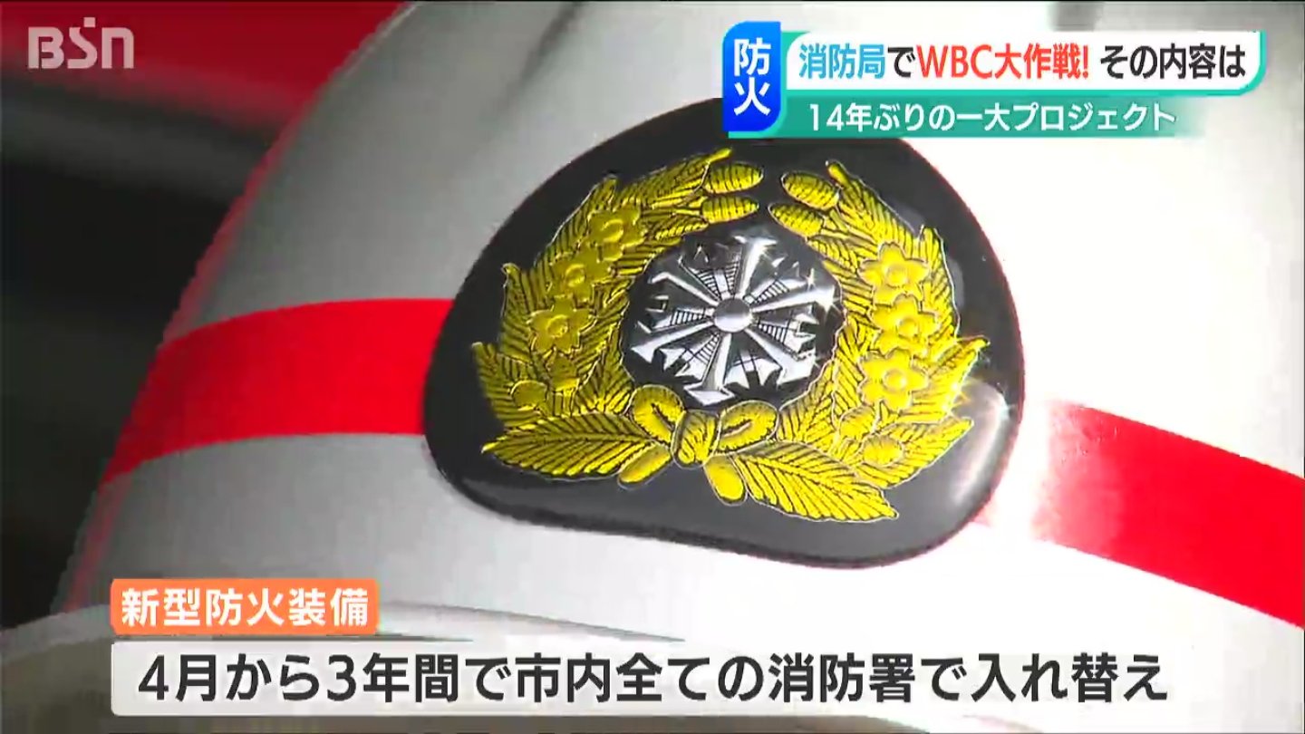 消防活動に欠かせない防火装備がこのたび、14年ぶりに更新されたことを広く知ってもらおうと、いま日本中が注目する野球にかけて『WBC大作戦』というキャッチコピーで展開しているものです。