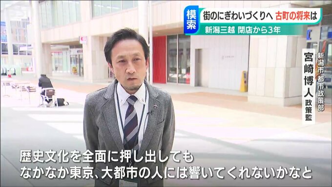 三越閉店後に古町の賑わいをどう作っていくのか、イメージを共有するために「将来ビジョン」が作られました。しかし、商店街から聞こえてくるのは、「新潟市は、古町を観光で盛り上げたいのか、暮らしやすい街にするのか、両方だと考えているのか…分からないという」という声です。