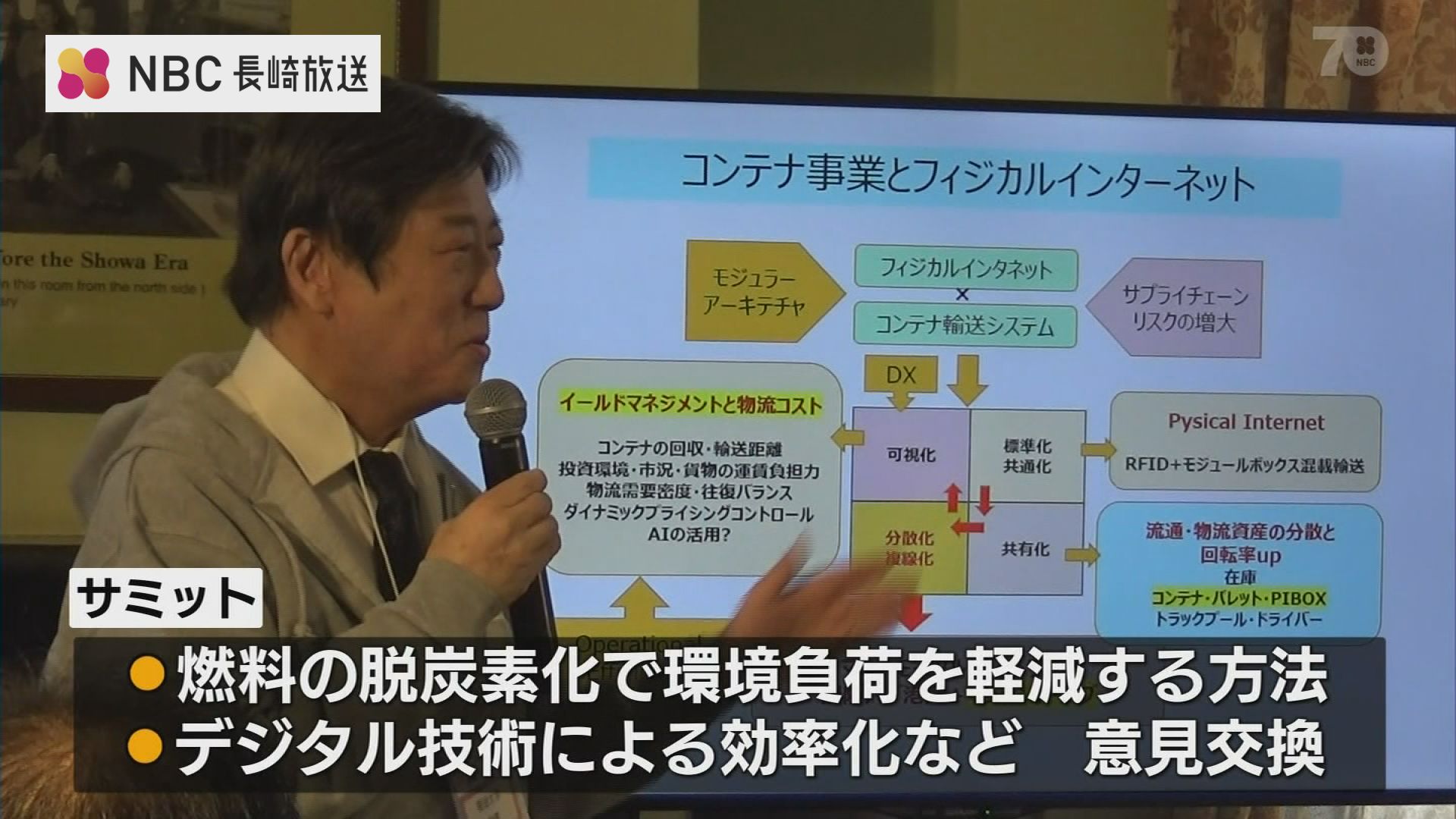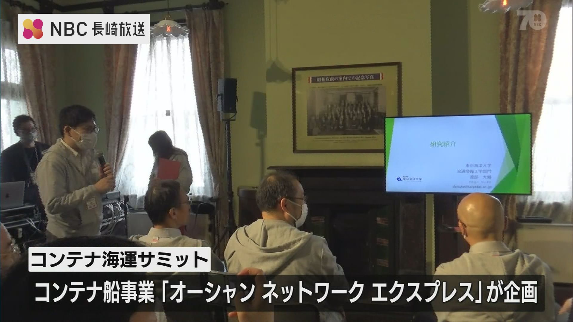 洋服や食べ物など私たちの身近なものの多くはコンテナで運ばれてきます。かつて日本の海運の一大拠点だった出島に全国から研究者など50人以上が集まったサミットは、コンテナ船事業の国内大手企業が産学連携の機会を作ろうと企画しました。