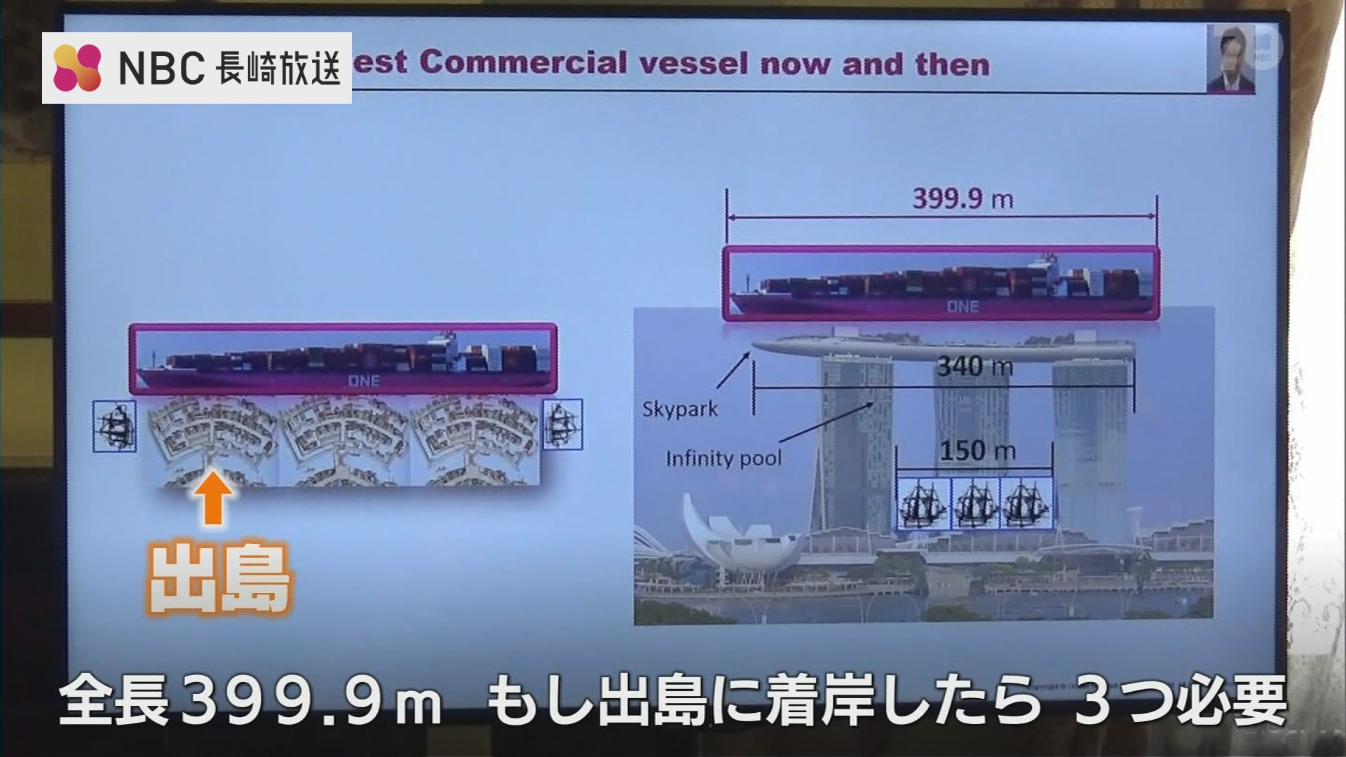 「全長399.9mということで、もし出島に着岸したらどうなるかと、(出島が)3つ必要です」