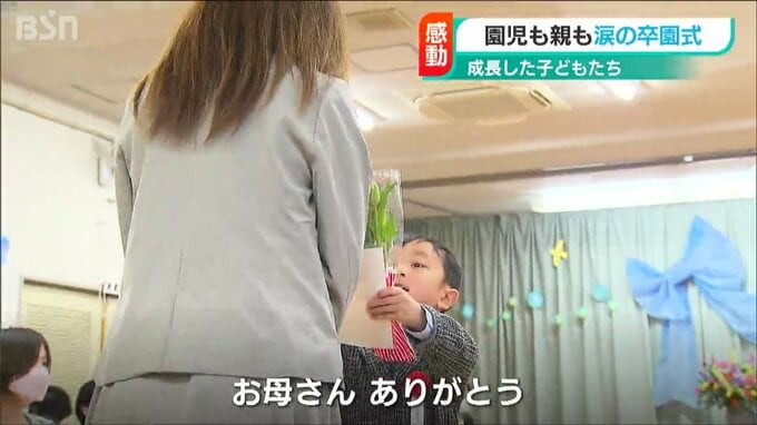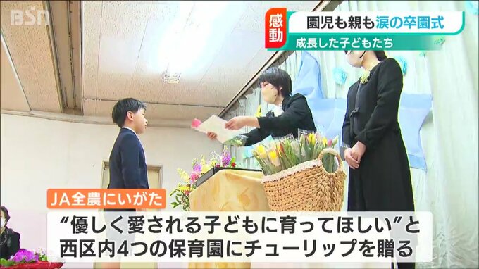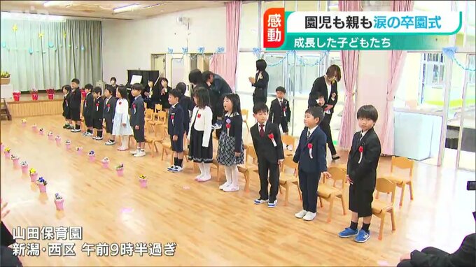 新潟市の保育園で卒園式が行われ、園児が感動して涙するなど、親子ともに思い出に残る1日になったようです。