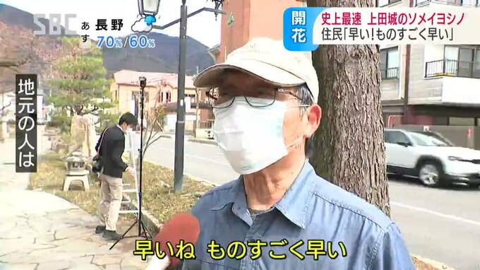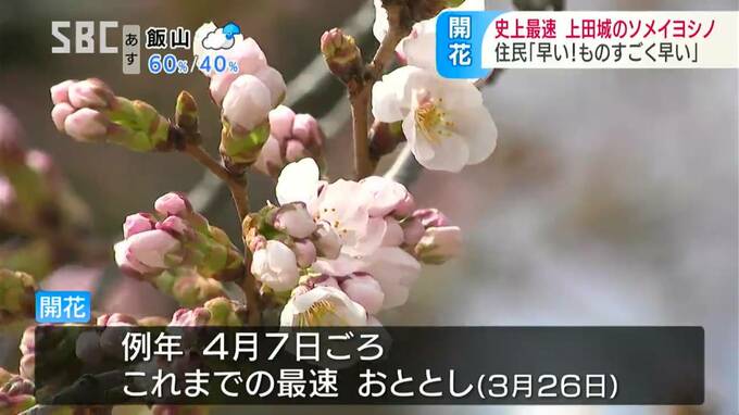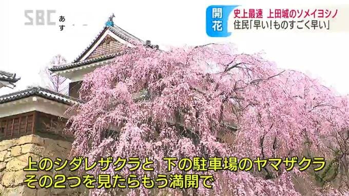 上田城跡公園でも、きょう24日、ソメイヨシノが史上最速で開花しました。