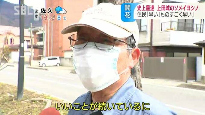 咲き始めは例年だと4月7日頃、また、これまでの最速はおととしの3月26日で、ここ数年、開花が早くなる傾向があるということです。