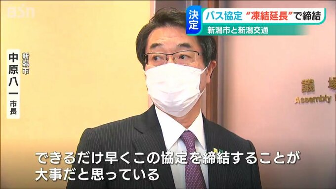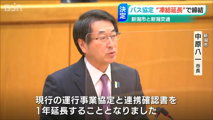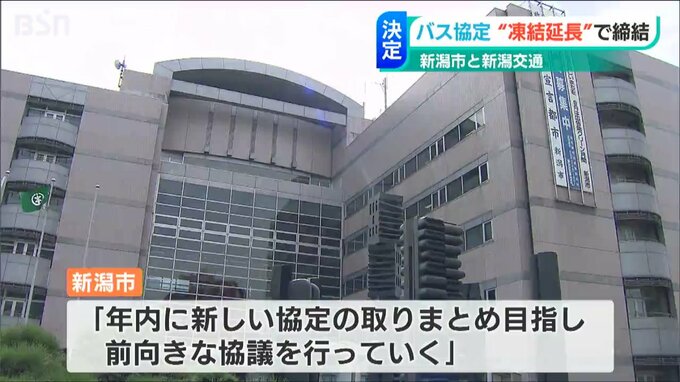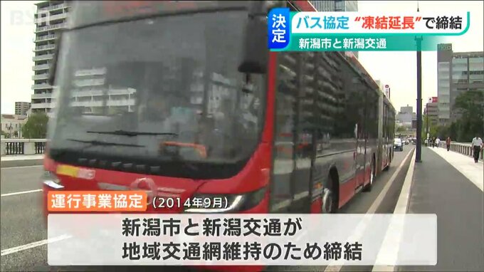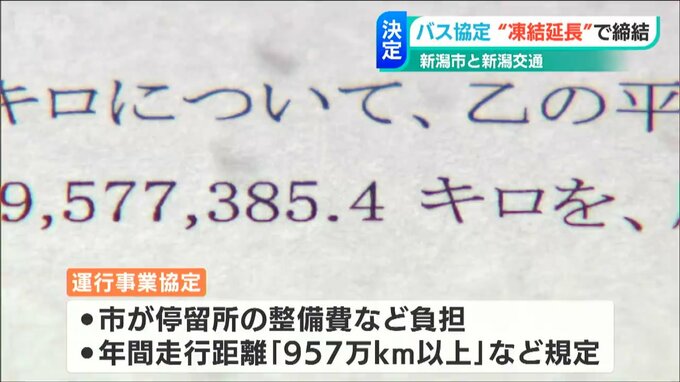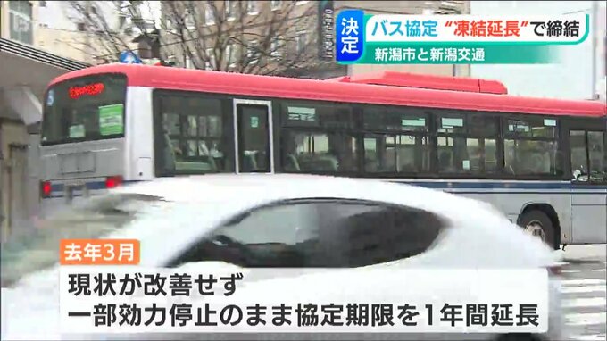 新潟市と新潟交通が結んでいるバスの年間走行距離などを規定する協定は、一部の効力を停止させた凍結状態のまま、「1年間延長される」ことが分かりました。