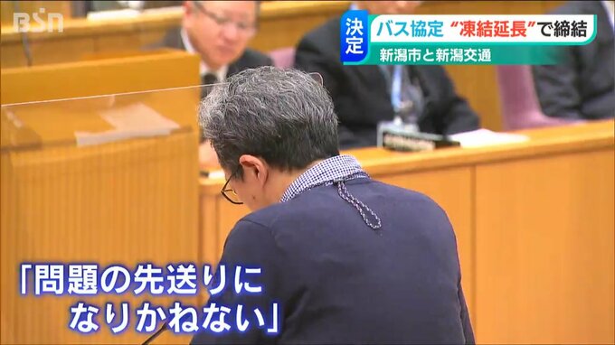 バス事業が厳しい状況にある新潟交通と、年間走行距離の維持は譲れないとする新潟市…。両者の意見が相容れないまま、今回、再び現在の協定が1年間延長されることになり、市議からは「問題の単なる先送りにもなりかねない」との声も上がりました。