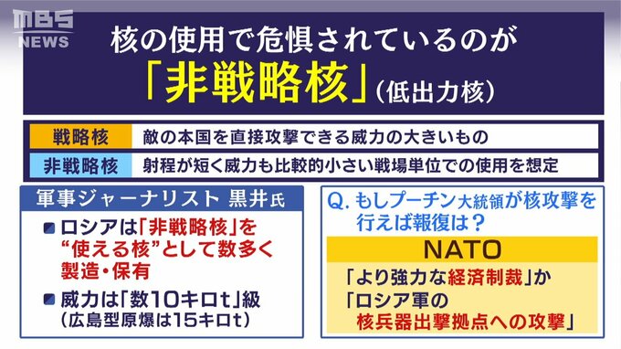 ―――核の使用で危惧されているのが「非戦略核(低出力核)」というものです。戦略核は敵の本国を直接攻撃できる威力の大きいものですが、非戦略核は射程が短く威力も比較的小さい戦場単位での使用を想定したものです。核にも種類があるということなんですね。