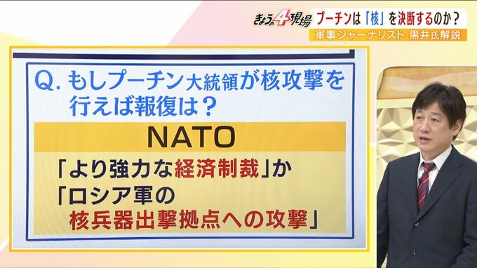 ―――もしプーチン大統領が核攻撃を行えば、それに対する報復はどうなるのでしょうか。黒井さんによると、NATOが「より強力な経済制裁」か「ロシア軍の核兵器出撃拠点への攻撃」ということですが?