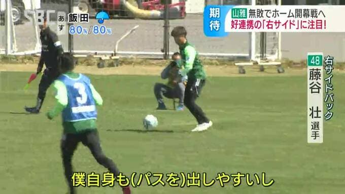 「壮くん(藤谷選手)とは練習だったり試合中もたくさんコミュニケーション取りますし…。2人で崩してクロスだったりシュートだったりそういうシーンをたくさん増やしていきたいなと思います」