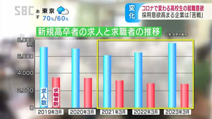 新型コロナの影響で高校生の就職への考えが変わってきています。