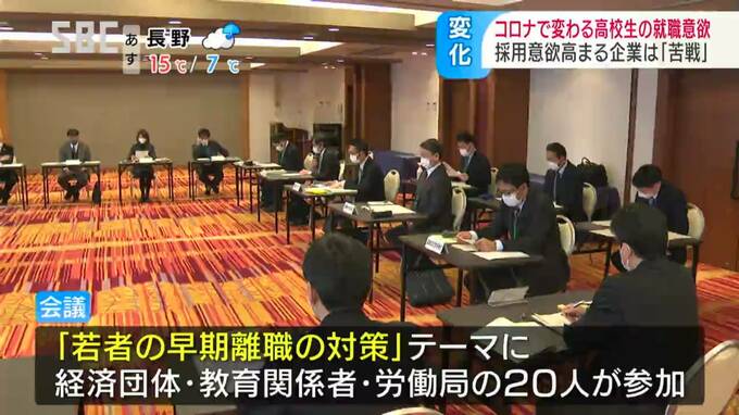 24日は長野市で若者の早期離職の対策をテーマにした会議が開かれ、経済団体や教育関係者など20人が参加しました。