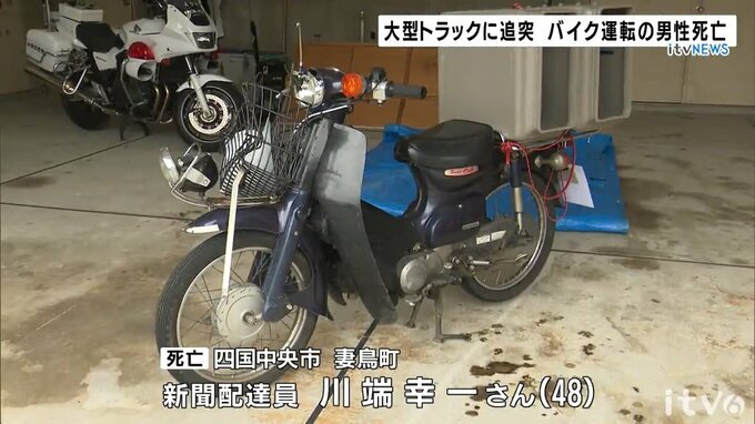 25日、愛媛県四国中央市内の国道で、バイクが信号待ちをしていた大型トラックに追突する事故があり、バイクを運転していた男性が死亡しました。事故があったのは四国中央市妻鳥町の国道192号で、25午前5時半ご…