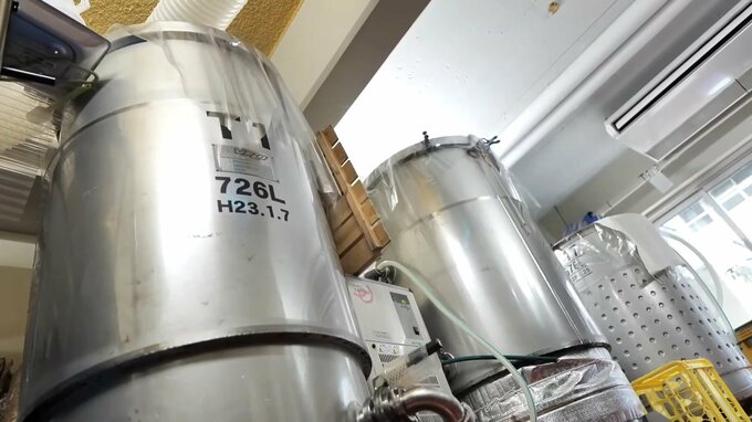 「ここは洗米したり、お米を冷やしたり、麹を冷やしたりするフロアなんです。こちらにある3本のタンクの中には水道水。東京都の水道水です」