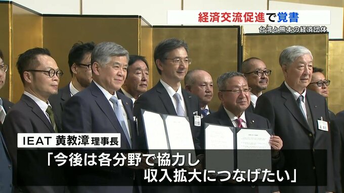 24日、台湾と熊本の経済協力をさらに促進しようと、それぞれの経済団体による調印式が行われました。熊本県内2つの経済団体と覚書の締結を行ったのは、台湾最大の経済団体『台北市出口商業同業公會(通称 IEAT)です…