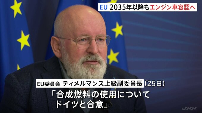 EU=ヨーロッパ連合の執行機関EU委員会は25日、すべてのエンジン車の新車販売を禁止する方針を改め、二酸化炭素の排出が実質ゼロとされる「合成燃料」を使用するエンジン車の販売は認めることを明らかにしました。E…