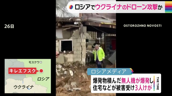 ロシアの首都モスクワの南に位置する州で爆発があり、3人がけがをしました。ロシア国防省はウクライナ側の“ドローン攻撃”によるものだとしています。ロシアメディアによりますと、トゥーラ州キレエフスクで26日…