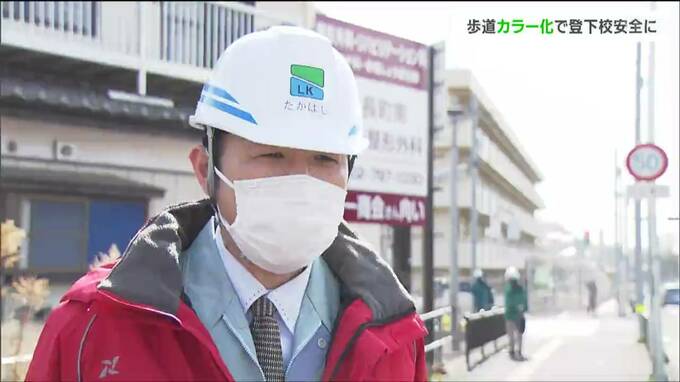 歩道のカラー化は、仙台市太白区の芦口小学校の北西側およそ65メートルの区間で行われました。