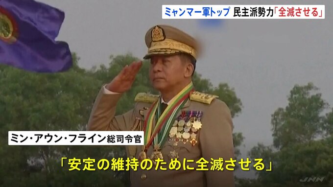 おととしのクーデターで実権を握ったミャンマー軍のトップは、民主派勢力をテロ組織だとして「全滅させる」と主張し、強硬姿勢を貫く考えを改めて示しました。ミャンマー軍は首都ネピドーで27日、「軍記念日」に合…