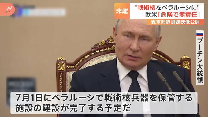 ロシアのプーチン大統領が戦術核をベラルーシに配備すると表明したことに対し、西側諸国は「危険で無責任だ」などと非難しています。イギリス軍の基地で行われた主力戦車「チャレンジャー2」の訓練。ウクライナ兵…