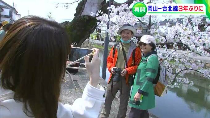 新型コロナの影響で運休していた岡山空港の「岡山ー台北線」が、きのう(26日)3年ぶりに運航を再開しました。観光地にも台湾からの人の姿が戻ってきています。「インバウンドの回復へ」と大きな期待を背負っての運航再開です。