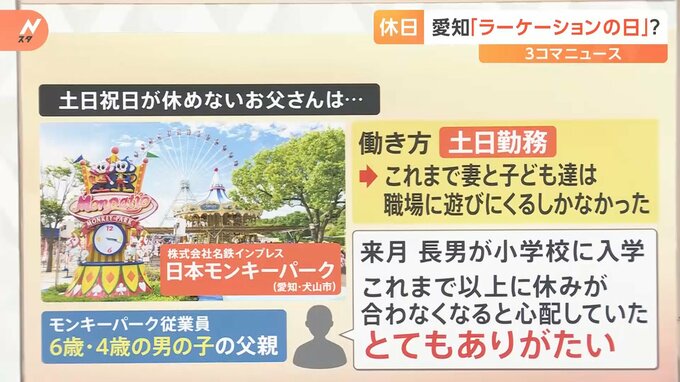 このラーケーションの導入について「来月、長男が小学校に入学するので、これまで以上に休みが合わなくなると心配していた」「とてもありがたい」とお話されていました。