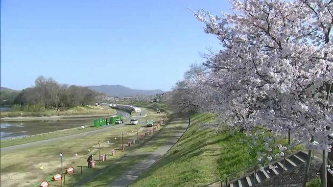 周辺では、31日から4年ぶりとなる岡山さくらカーニバルが始まる予定で、河川敷では準備が進められています。