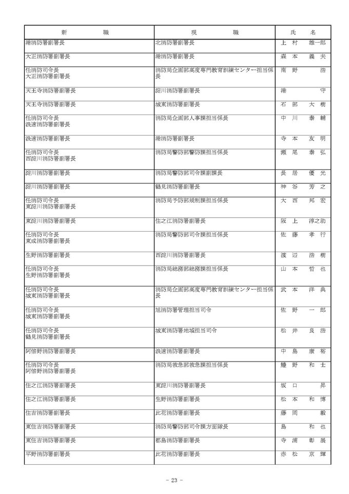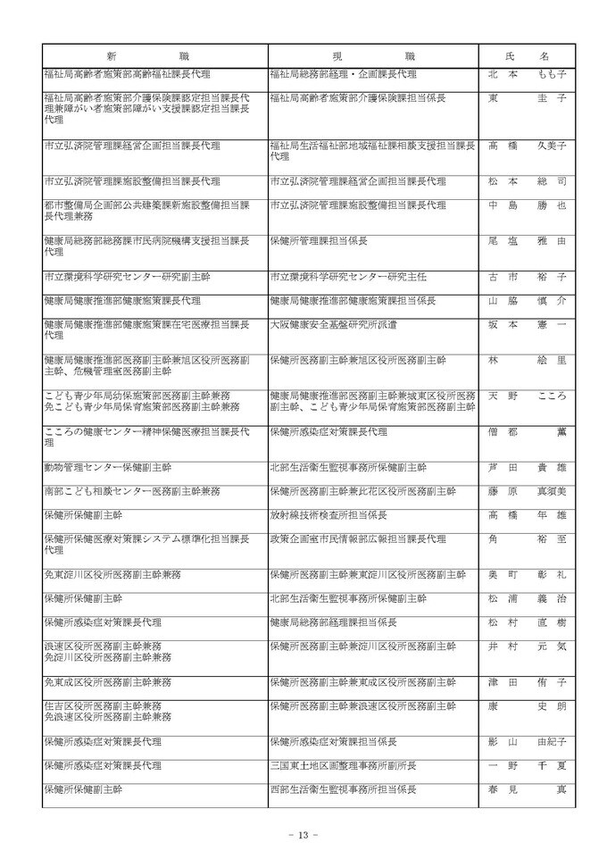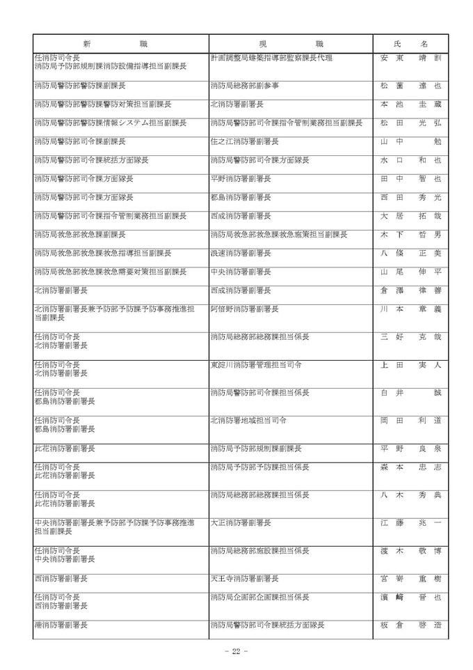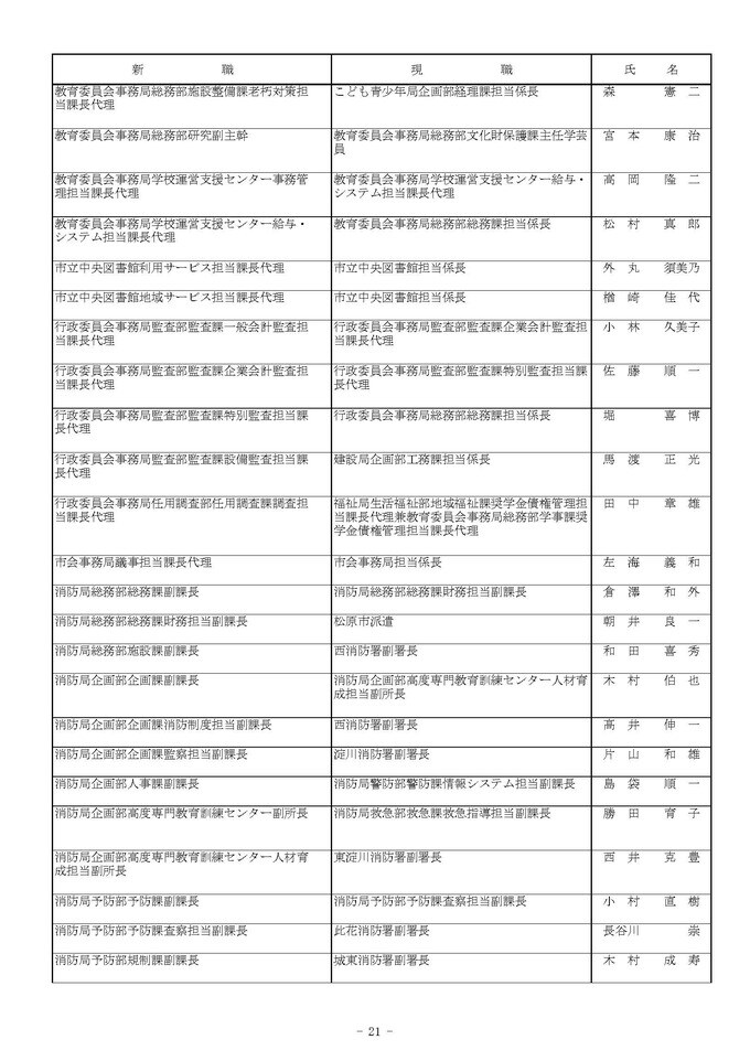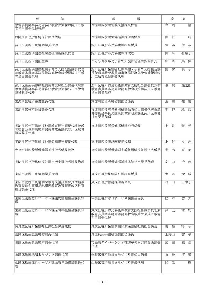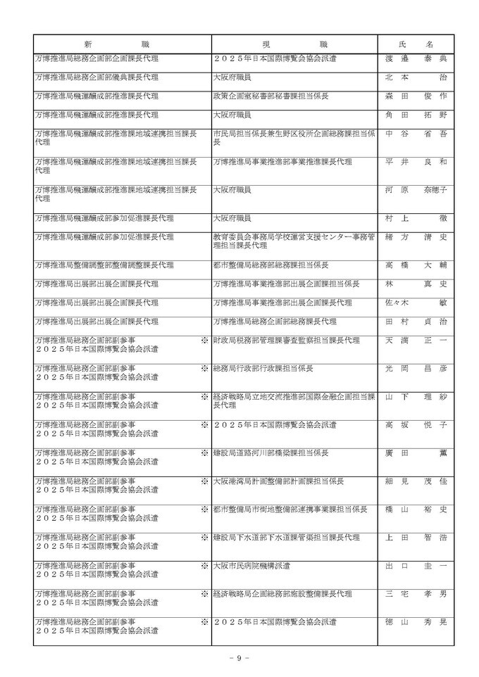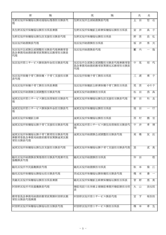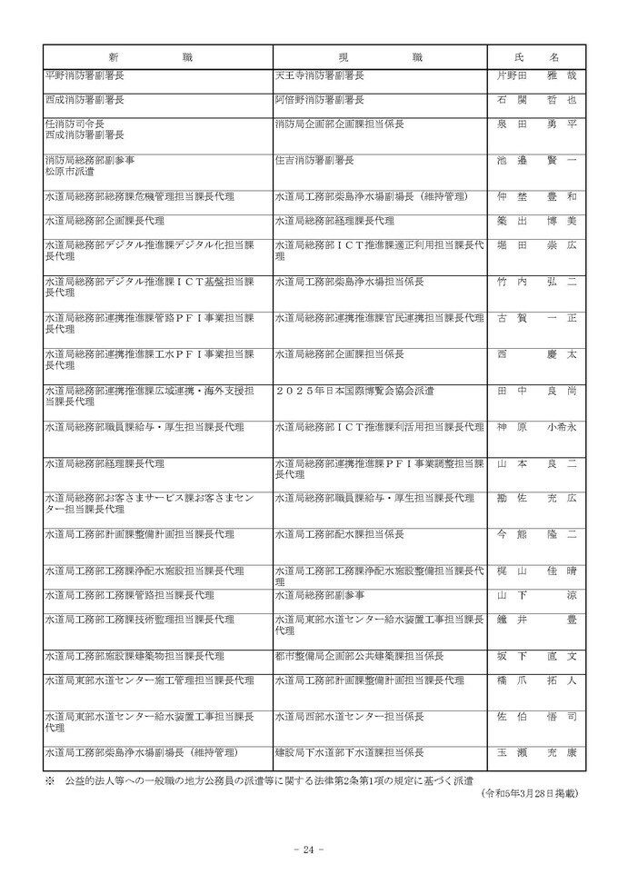 課長代理級の人事異動(大阪市発表資料より)