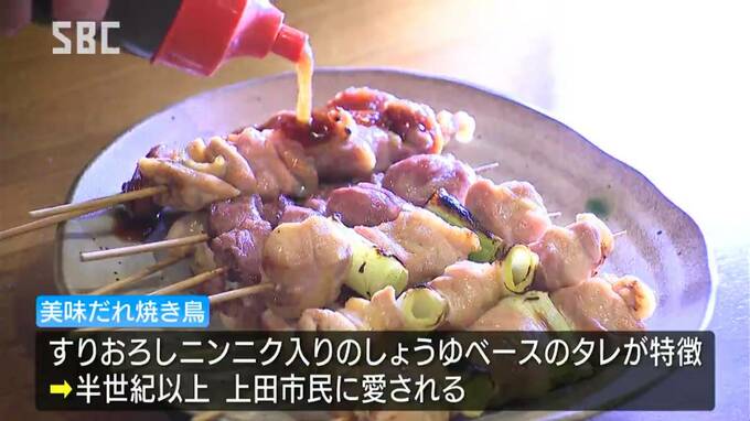 「美味だれ焼き鳥」はすりおろしニンニクが入ったしょうゆベースのタレが特徴で、半世紀以上にわたって上田市民に愛されてきました。