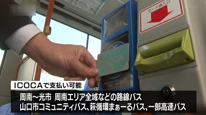 バス利用者の利便性向上をはかります。山口県周南エリアなどを走るバスの運賃が、交通系ICカード・ICOCAで支払えるようになりました。周南市の防長交通は、今月25日からICOCAでの運賃支払いを始めました。SuicaやSU…