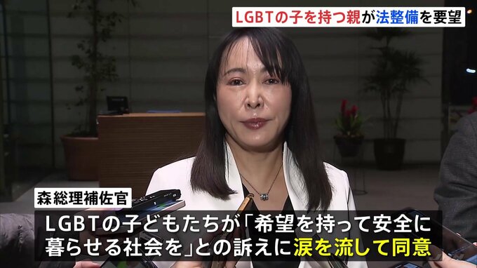 LGBT=性的マイノリティの子どもを持つ親たちがLGBT理解増進担当の森まさこ総理補佐官と面会し、「差別禁止」を明記した法律の整備を要望しました。「性的マイノリティの子を持つ親有志」 松岡成子さん「(LGBTの…