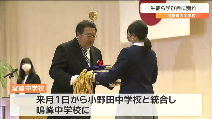 生徒数の減少に伴い3月末に閉校となる宮城県加美町の中学校で28日、閉校式があり生徒らが学び舎との別れを惜しみました。加美町立宮崎中学校の閉校式には、3年生までの全校生徒79人を含め地域住民らおよそ300人が…