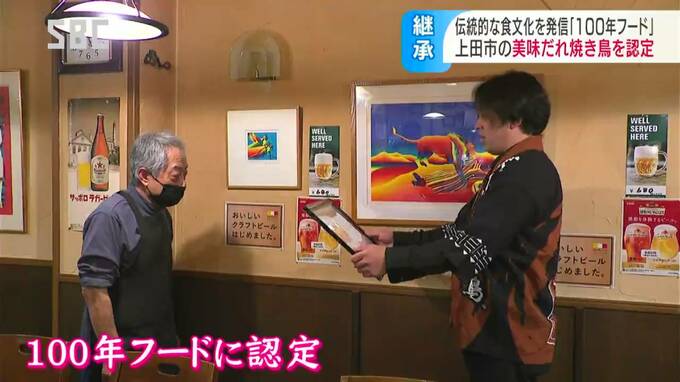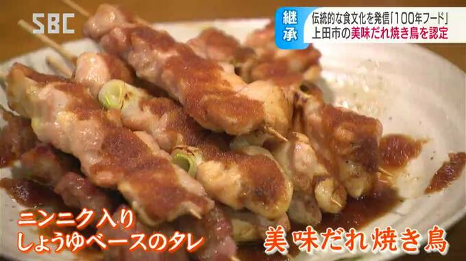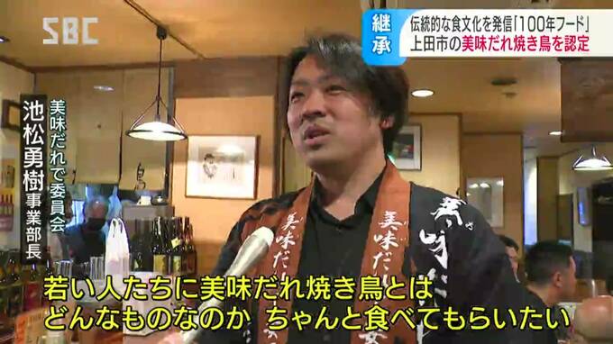 認定を受け、飲食店などでつくる有志団体「美味(おい)だれで委員会」が、27日夜、発祥の店といわれる上田市の「鳥正(とりまさ)」に感謝状を贈りました。