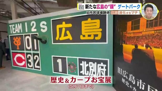 このシミントひろしまの一角を利用して、カープファンにはうれしい旧球場のスコアボードや歴代ユニフォームも特別展示されています。(歴史&カープお宝展 5月7日まで)
