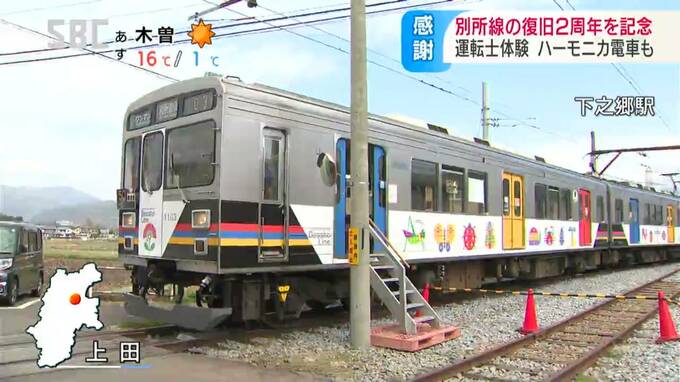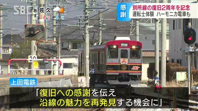 4年前・2019年の台風19号で橋梁が崩落するなど大きな被害があった上田電鉄別所線。全線の復旧から2周年を迎え、感謝を込めたさまざまなイベントが開かれました。