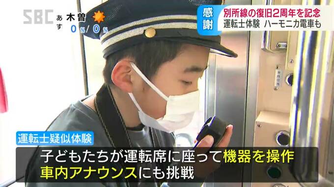 上田市の下之郷(しものごう)駅にある車両基地では、運転士の疑似体験が行われ、子どもたちが運転席に座って機器を操作したり、車内アナウンスに挑戦したりしました。