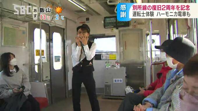 車内では、スタッフによるハーモニカ演奏が披露され、乗客が昔懐かしい音色と車窓からの風景を楽しんでいました。